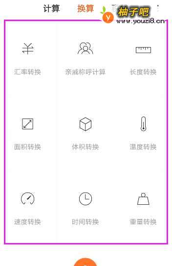 4然后,切换到这个页面,在这里你会看到很多的功能选项可以换算,如图所示