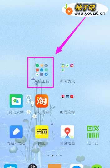 在手机桌面点击系统工具夹,如图所示