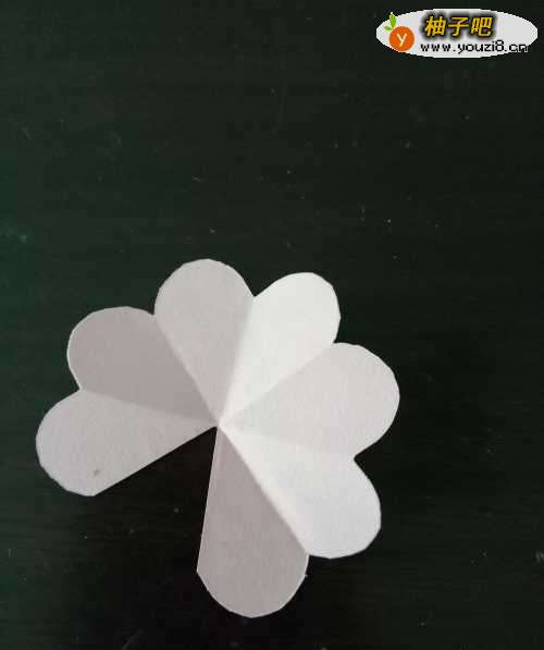 4打开后,再将八分之一剪去,在一小面上粘上双面胶,并压平