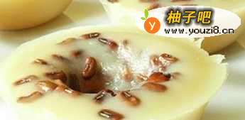 粘米粉半斤,黄砂糖半斤,清水2杯,红豆适量。