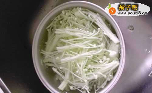 4把金针菇撕开泡在水里,洗干净,如下图所示。