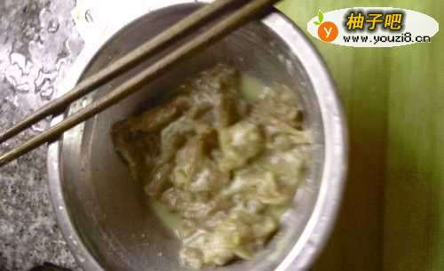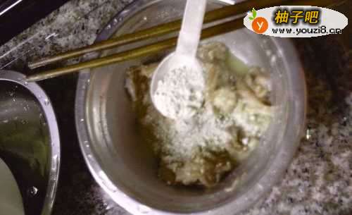 6加油加蕃薯粉去搅拌一下,如下图所示。