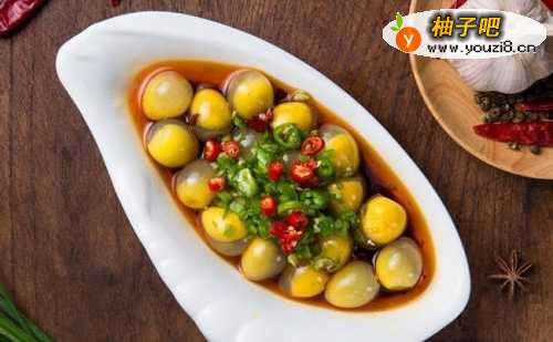 3【3】调皮的蛋。将备好的鹌鹑皮蛋剥开去壳摆入盘中,锅中入油少许,加入剁碎的尖椒快速翻炒片刻,待尖椒炒至断生再洒少许盐巴一起搅拌均匀,起锅;将超过的青椒和底油倒入放有皮蛋的盘中,最后根据个人口味适量地加入辣椒、生抽、芝麻油及花椒油即可。
