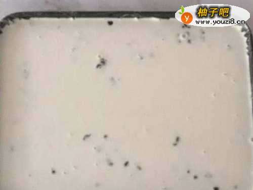 3模具铺一层保鲜膜,刷一层食用油,将蜜红豆铺在模具里