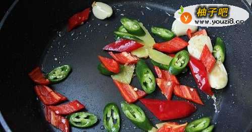 7锅内放入姜蒜辣椒炒香;