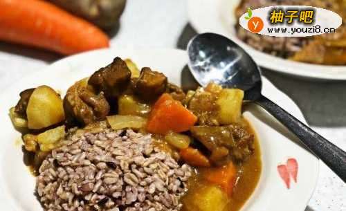 把猪胛心肉煎得香香的再与蔬菜一起下锅炖煮咖喱,简单的作法,却能吃的又香又饱。