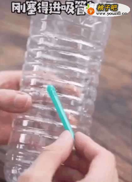 在瓶子下方戳一个洞,塞的进吸管就好。