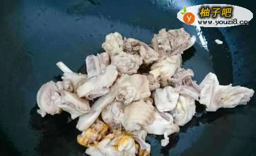 首先,将鸡肉斩块,在流水下冲洗干净后,冷水入锅(不用盖锅盖),水开后瓢去浮沫,焯一下,捞出控水沥干。