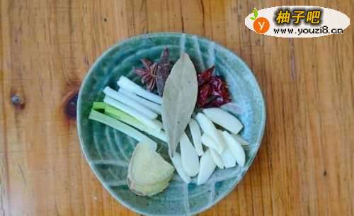 3准备好葱姜蒜,八角,桂皮,香叶以及干辣椒。
