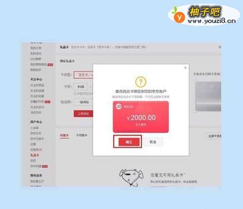 3在弹出的“是否将此卡绑定到您的京东账户”——“确定”;