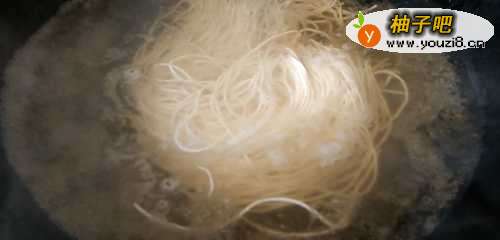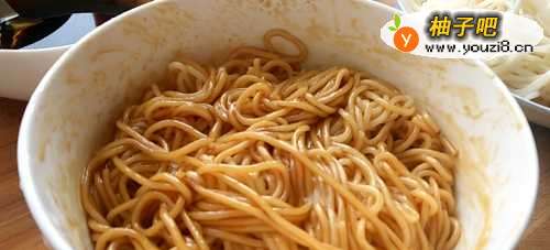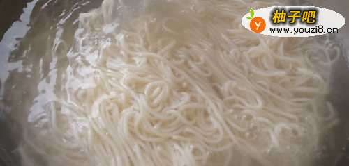 6将面捞出放入凉水中过水,捞出沥干水分。
