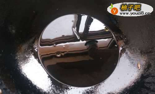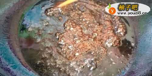 4将调好的调味料倒入油中,小火熬制2分钟。