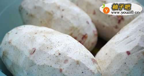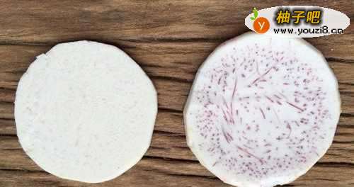 3挑选普通芋头一横切面上紫红色的纹络越多越密,通常就越粉,反之,空白之处越多,肉质相对就比越差。我们选的都是比较好的芋头。