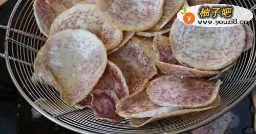 6把芋头捞出沥干油分。