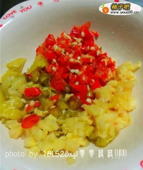 2酸菜用清水冲洗干净,拧干水分,切碎;从市场上买回来的酸菜,最好在清水里浸泡片刻;