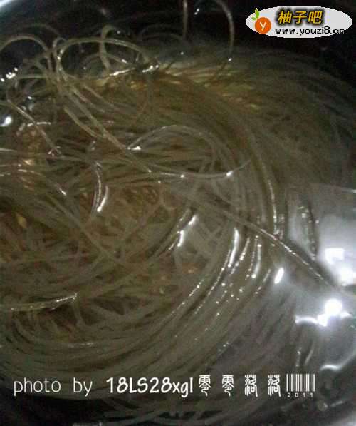 将粉条放在清水里,浸泡至软;大概需要30分钟左右,没有提前泡软也没关系,后面可以把它煮熟;