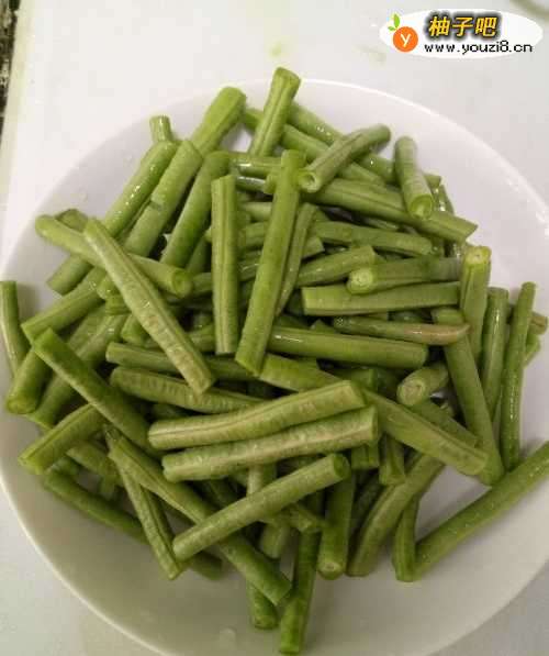 3烧热锅,放入适量油,把豆角放入炸至微皱后装盘。