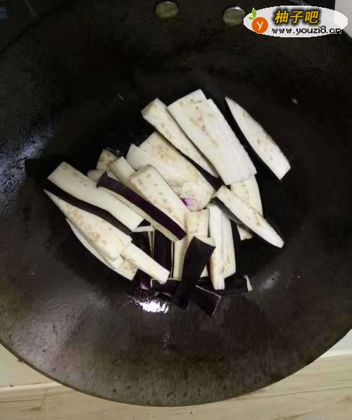 4将茄子条放入热油中,炸至变软后装盘。