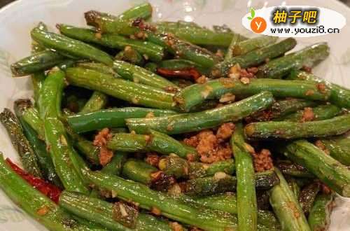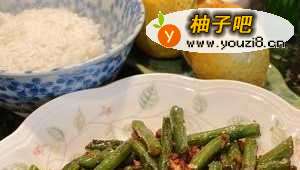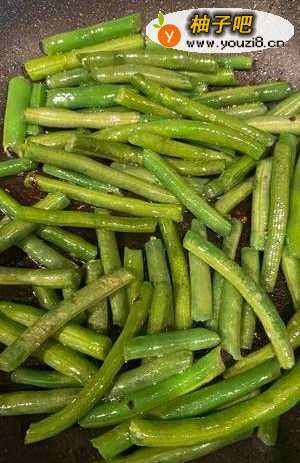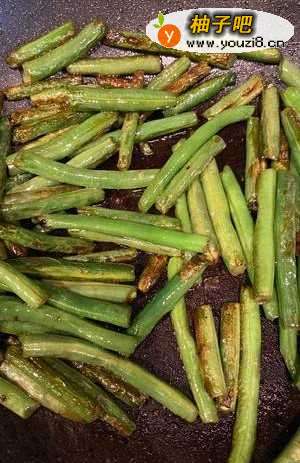 2冷锅下油,油烧热后放四季豆煸炒一下。