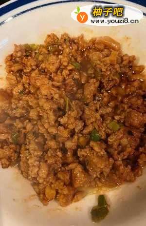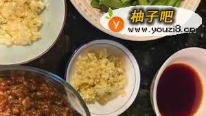 4锅里剩油放葱姜,炒出香味炒肉末,盛出备用