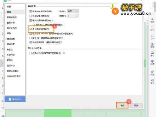 3在编辑页面,勾选【单元格拖放功能】,点击【确定】即可。