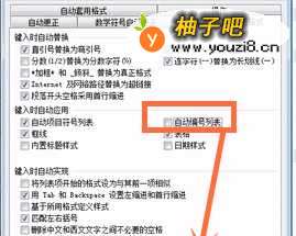6在【自动更正】弹出框中取消勾选【自动编号列表】并确定。
