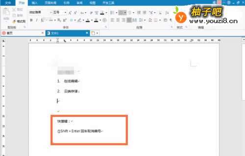 第一种比较简单是Enter回车键,如果已经标号了,使用回车后会自动延续编号,这时候使用Enter键或者Backspace键就能删除现有编号。