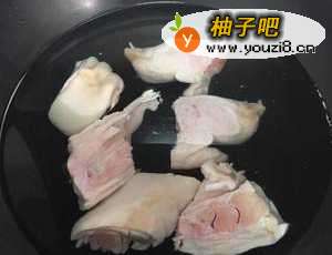 超市买回来的猪蹄洗净 用毛用镊子拔出 锅中加水放入猪蹄