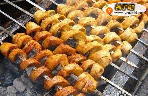 烤面筋:西安小吃的一种,常见于中小学与商业区附近。面筋一直是我国素菜中的经典食材,这在古典《红楼梦》里多有记载 。传统的烤面筋是将面粉经过水洗得到的面筋进行制作的,而现在已经用面筋粉(谷朊粉)代替了。将面筋粉经过特制而成型的弹簧(螺旋状)的形状的食物坯料,经过拌、淹、蒸、煮、烤等工艺处理,最后撒上调料即成香气扑鼻的烤面筋。