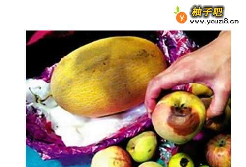 3吃烂水果等于慢性自杀,很多人为了贪小便宜,就买了一些快要过期的水果,殊不知对身体的伤害极大,霉菌产生的展青霉素可以扩散到果实的其他 部位,未必是你肉眼可见的,如下图所示: