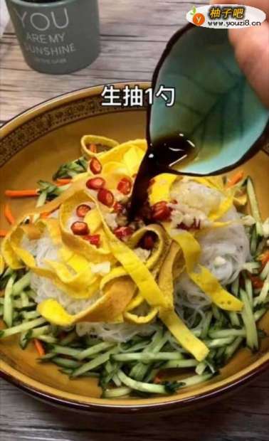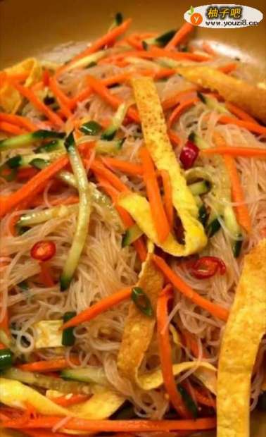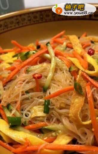 胡萝卜、黄瓜切丝,倒入碗中,加入提前泡好的粉丝