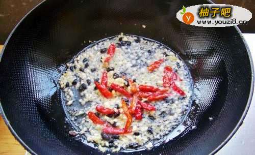 5坐锅起油,下豆豉、姜蒜、辣椒炒香