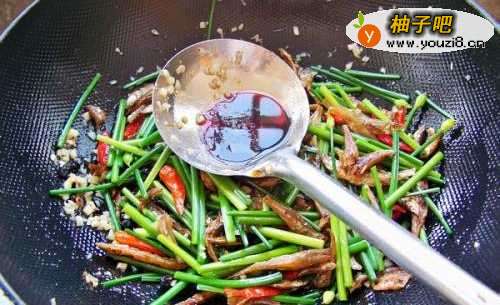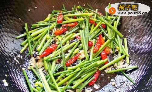 6下韭菜花,翻炒1分钟