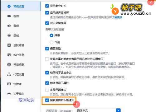 腾讯会议怎么关闭桌面右下角通知