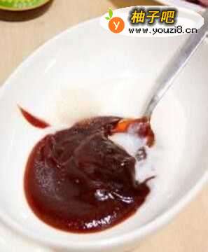 2把排骨酱、米酒、盐、糖(或蜂蜜)放入碗中搅拌均匀,成为腌制排骨的酱料。