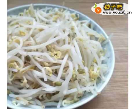 22、锅里加适量水烧开,放少量的盐,把豆芽放进去焯水,大火焯水15秒后捞出。