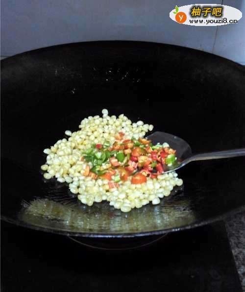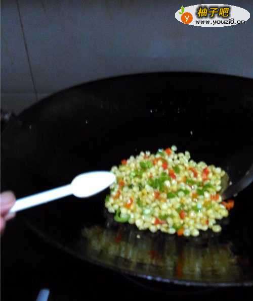 6放入玉米大火翻炒。
