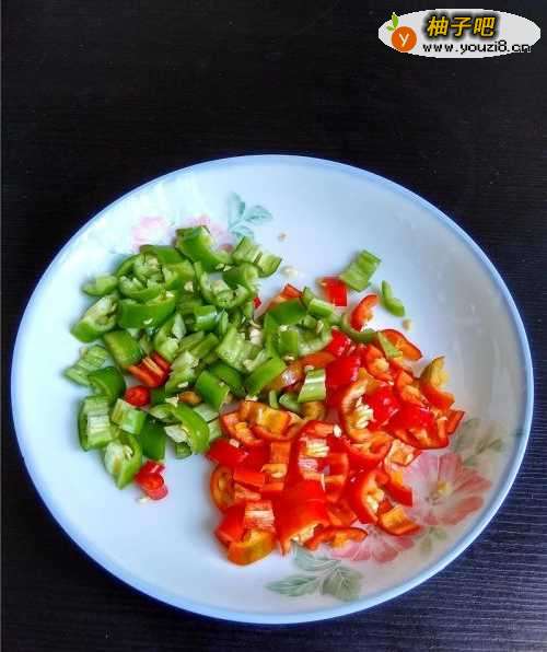 3二荆条美人椒去蒂洗净,切丁。
