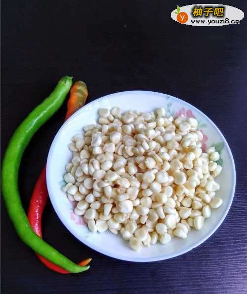 备好食材:玉米剥粒,二荆条美人椒。
