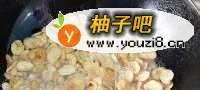 5白糖、饴糖加水溶化,熬至115℃即可为已拌好辅料的胡豆滴糖衣。