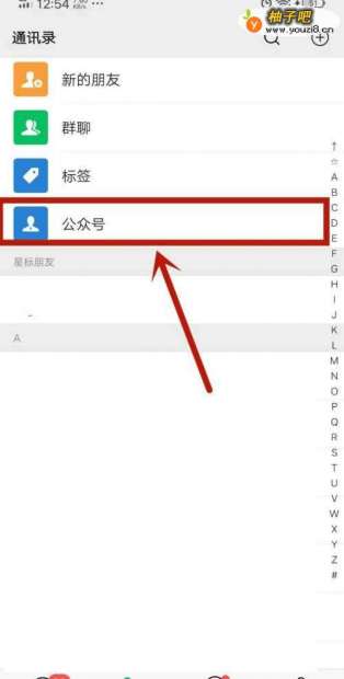 首先在微信中,找到公众号进入到里面,如图所示。