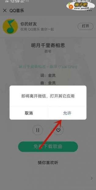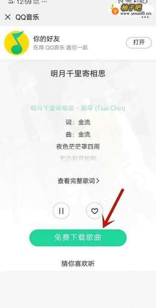 4然后微信会加载QQ音乐页面,点击【免费下载歌曲】按钮,如图所示。