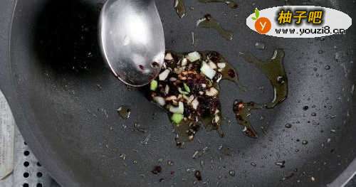 5炒锅放入底油,下入豆豉煸香,再依次下入蒜、姜、黄酒煸香。