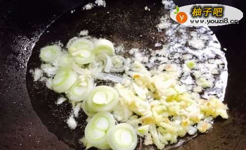 3接着开火。锅烧热之后放入少许油,油热了之后把葱姜蒜末倒进去煸香,香味出来后即可。