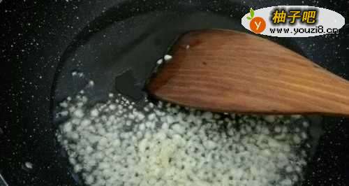 4放蒜末,轻翻几下就会出香味。火开大,依次放干辣椒,青红椒丝,下土豆丝,需要快速翻炒,油锅很热,避免干红辣椒变黑,也避免土豆丝受热不匀。酸辣土豆丝脆爽好吃,所以快速翻炒,会看到直直的土豆丝加热后卷起来,又展开的过程,颜色也会微微变透明。