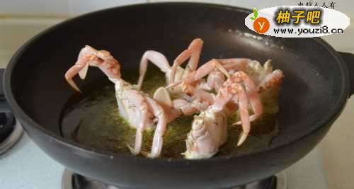 9开油锅,将沾过生粉的蟹面放在锅中煎一下。