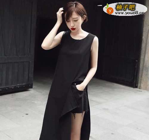 搭配二:白色开叉长款T恤+黑色短裤白色是很显洋气的白色,白色开叉长款T恤搭配一条黑色短裤,个性十足又十分帅气。