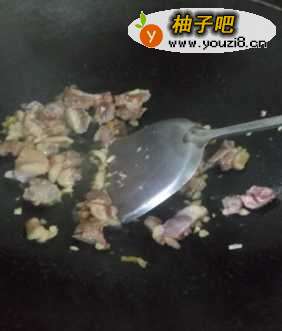 4放入鹅肉。在姜蒜爆香之后,放入鹅肉,加入1勺米酒、适量酱酒,迅速翻炒一下,然后加入大半碗的水,盖上锅盖,让鹅肉焖3-5分钟。
