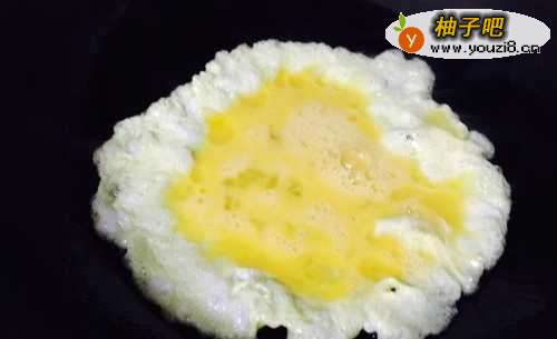 4接着开火,锅烧热之后,加入少许油羞译廊,油热了把打散的鸡蛋倒进锅里,然后用筷子轻轻拨动打散,带鸡蛋凝固即可!