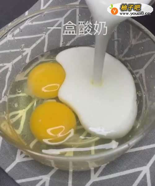 首先,碗里打入俩个鸡蛋,一盒酸奶